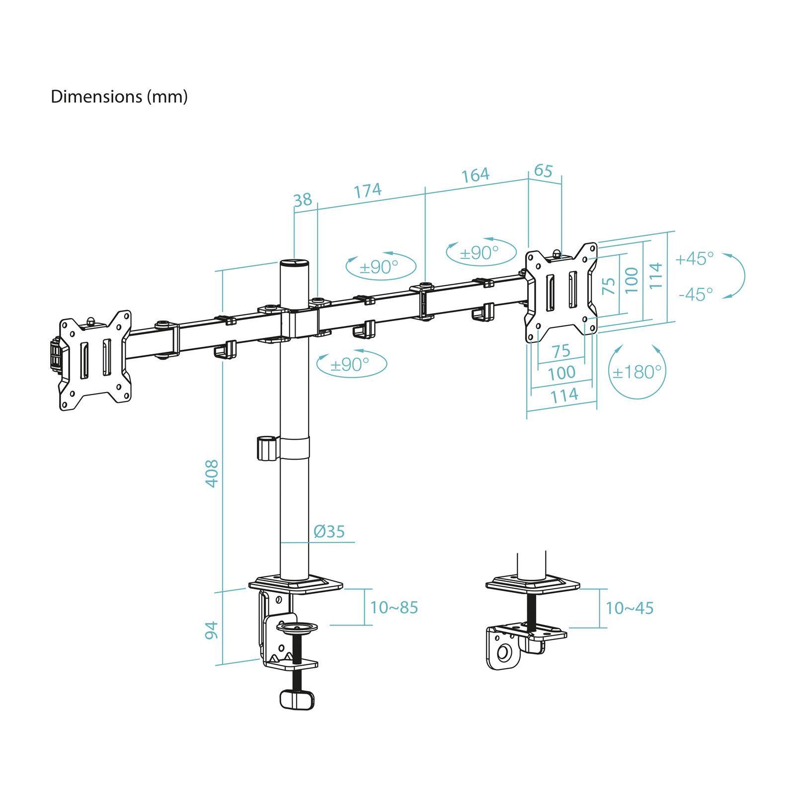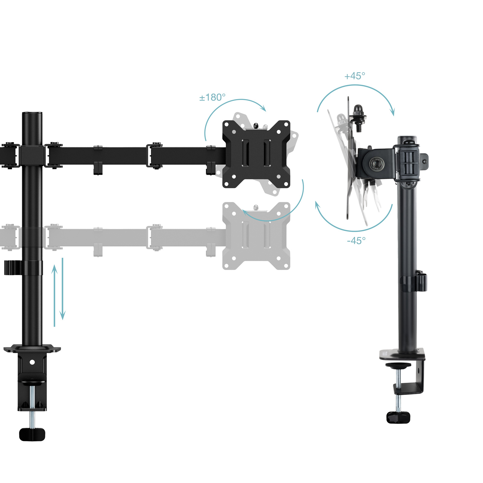 Con capacidad de rotación, giro e inclinación, este soporte te brinda un abanico de posibilidades para que puedas modificar la posición de la pantalla a tu gusto. Y, por si fuera poco, cuenta con dos brazos articulados para duplicar su potencial.