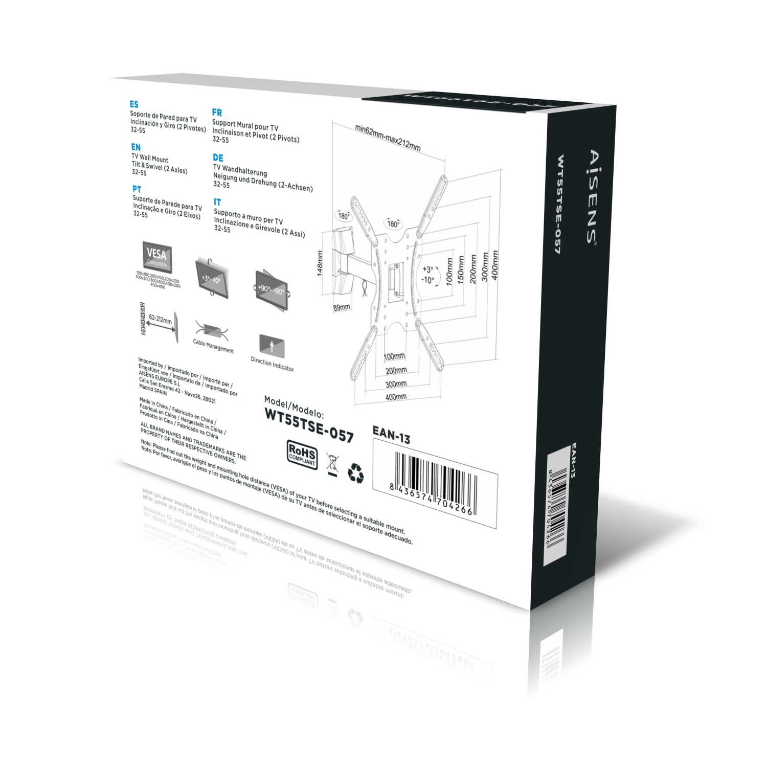 Soporte Pared AISENS 32″-55″ Gira/InclinaDisponibilidad: Hay existencias
