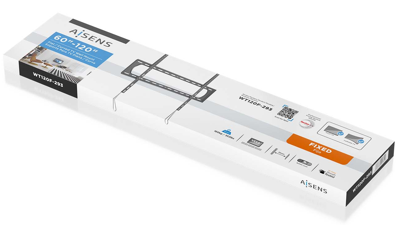 AISENS – Soporte Eco Delgado Para Monitor/TV 160kg De 60-120, NegroSoporte eco inclinable para monitor/TV de 60”-120”