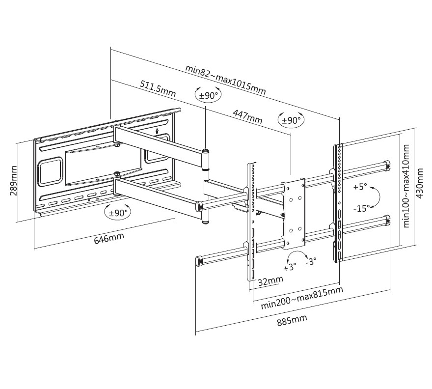 Equip Soporte de pared para TV de movimiento completo con brazo largo de 43"-80