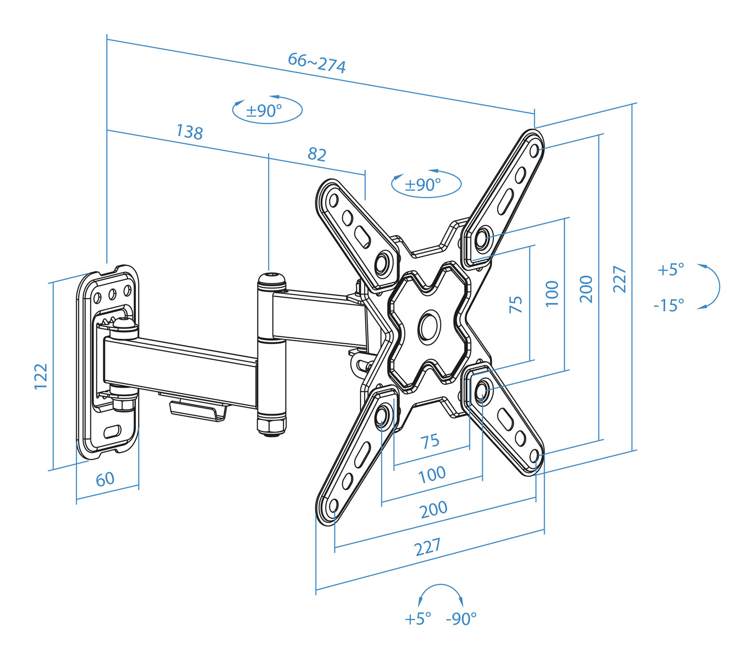 Soporte de Pared para Pantallas de 13’’-43”Prepárate para llegar a todo lo alto con nuestro nuevo soporte de pared. Fácil de montar, sólido y discreto, te permitirá acercar o alejar la pantalla gracias a su brazo articulado.
