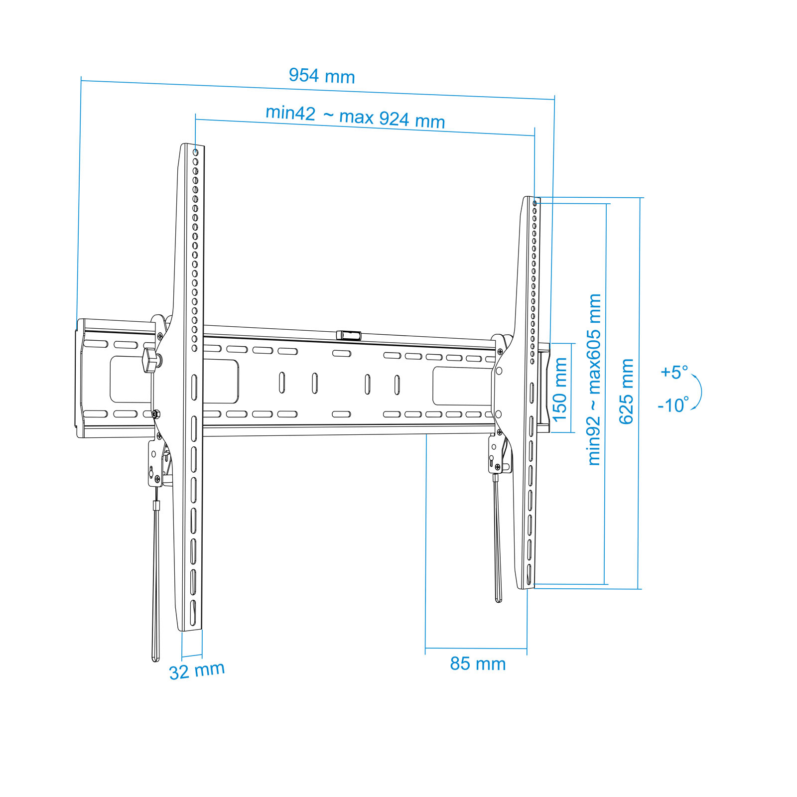 – Soporte metálico inclinable para monitor / TV LCD, PLASMA y LED (60″-100″)- VESA Máximo: 900 x 600 mm- Pantallas soportadas: 60″-100″- Carga Máxima: 75kg- Ángulo de Inclinación: -10o / +5o- Distancia a la pared: 85mm- Incluye nivel de burbuja para una mayor precisión en la instalación- Color negro