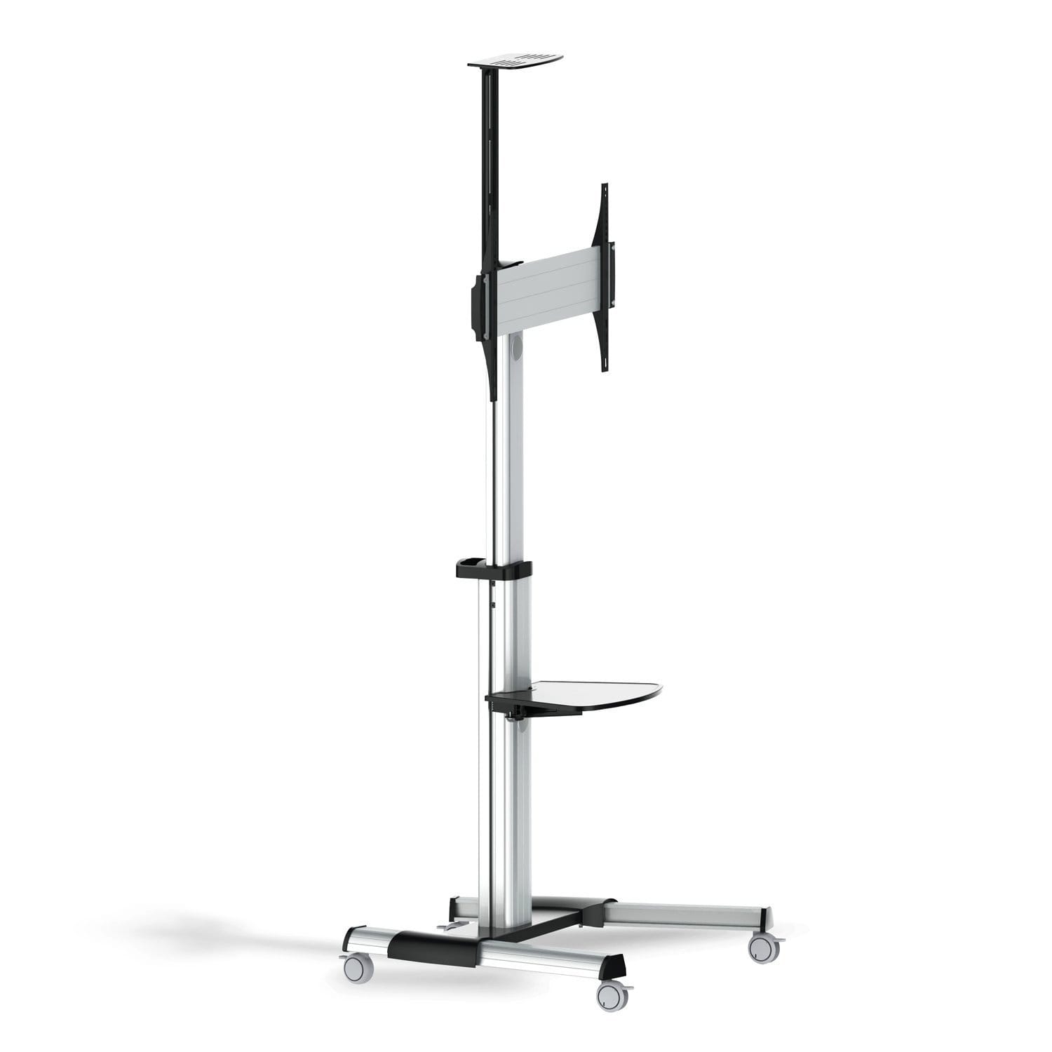 AISENS® – Soporte de suelo eco con rueda, bandeja para DVD y soporte de cámara para monitor/TV de 37”-70”. Fabricado con acero de alta resistencia y pintado con pintura electrostática para un acabado perfecto.