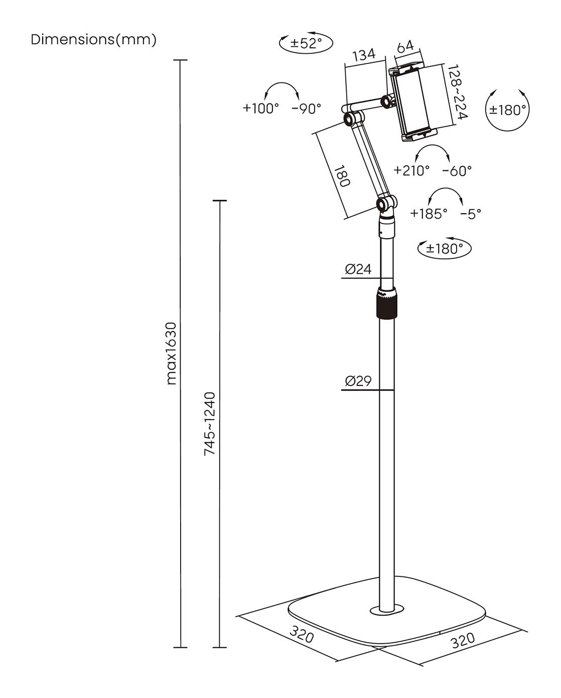 Soporte de suelo universal ajustable para tablet 4.7″-12.9″.Fabricado con aluminio y plástico de alta calidadEste soporte de suelo universal es la solución perfecta para aquellos que buscan un soporte versátil y ajustable para sus tablets de 4.7″-12.9″ pulgadas. Podrás ajustar tu tablet a la altura y angulo ideal para tu uso, ya sea que estés viendo una película, haciendo una videollamada, o haciendo presentacion. Además, con una base estable y antideslizante, tu tablet se mantendrá segura y estable mientras la usas, sin preocupaciones de caídas o accidentes. ¡Con este soporte de suelo universal para tablet, podrás disfrutar de la comodidad y la practicidad de tener tus dispositivos electrónicos al alcance de tus manos, en cualquier lugar de tu hogar o lugar de trabajo!