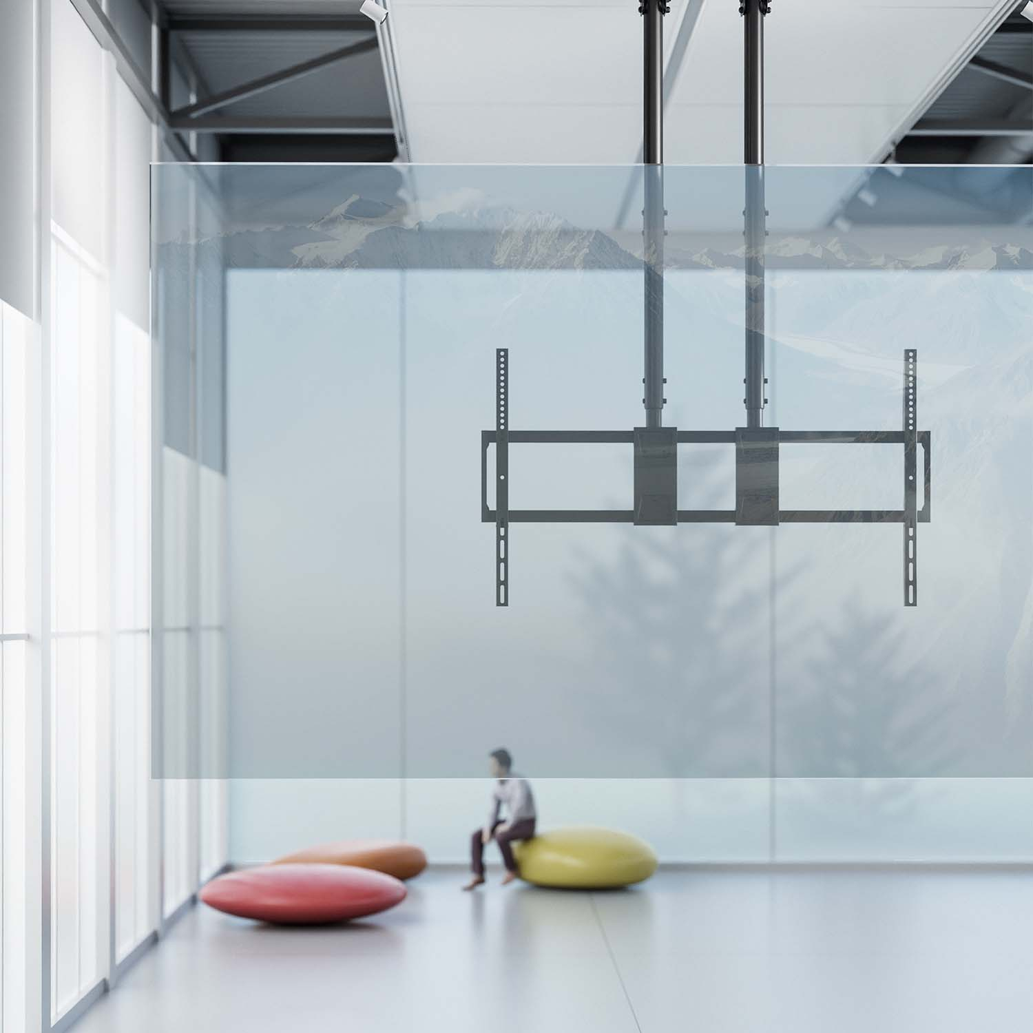 – Soporte de techo profesional giratorio, inclinable, extensible y nivelable para monitor/TV de 60”-120”- Fabricado con acero de alta resistencia y pintado con pintura electrostática para un acabado perfecto.- Incluye tacos de la marca FISCHER en el kit de montaje para una instalación profesional y segura.- VESA Máximo: 1000x600mm (Compatible con VESA de 400×200, 400×300, 400×400, 600×400, 800×400, 600×600, 1000×400, 800×600, 1000x600mm)- Carga Máxima: 120kg- Angulo de Inclinación: -25º / 0º (depende de la instalación y del espacio disponible)- Angulo de nivelación: -1º / +1º- Distancia entre techo y pantalla: ajustable entre 1090 y 2104mm (depende de la instalación y del espacio disponible)- Sistema de pasacables: dispone de unos orificios para poder pasar los cables por el interior del tubo.