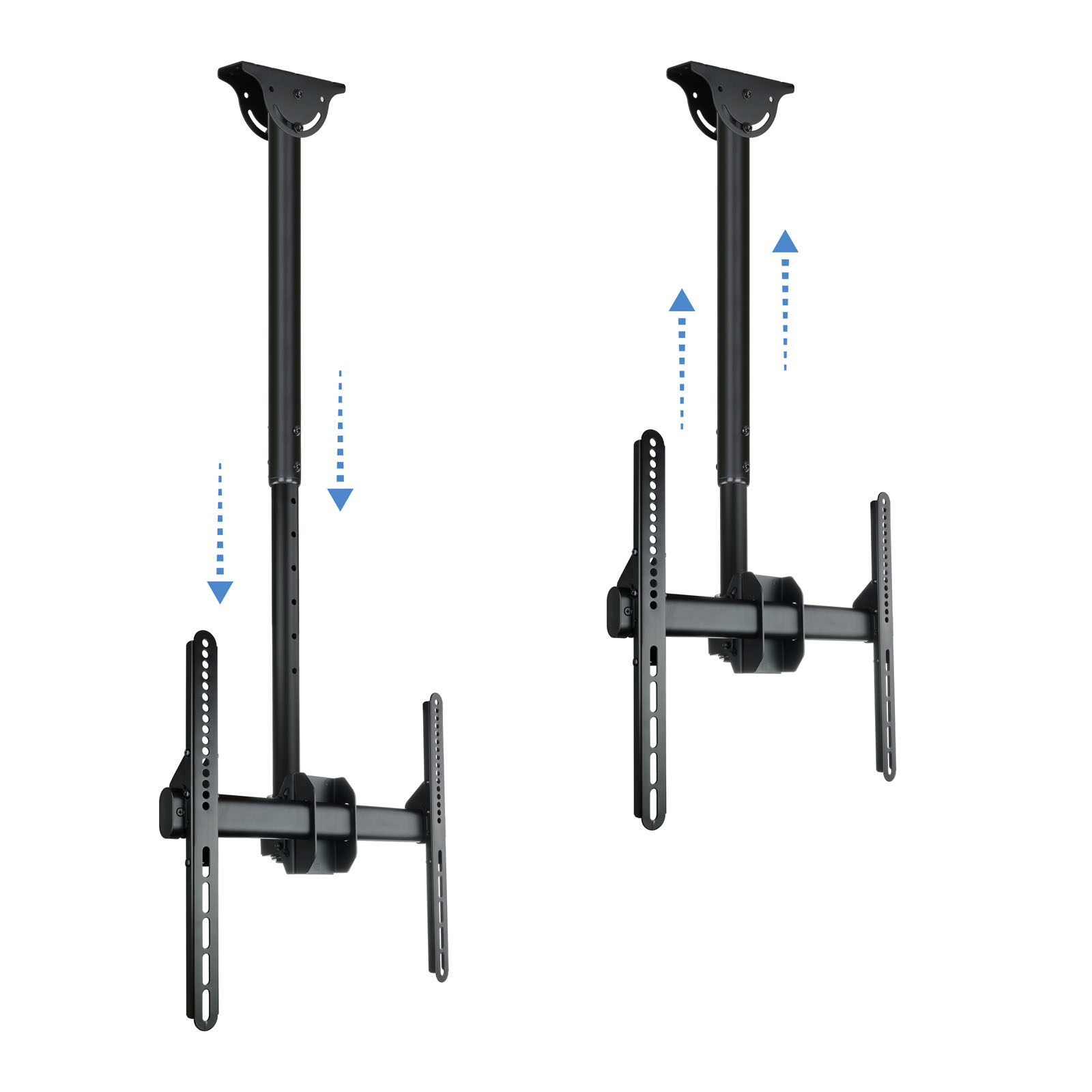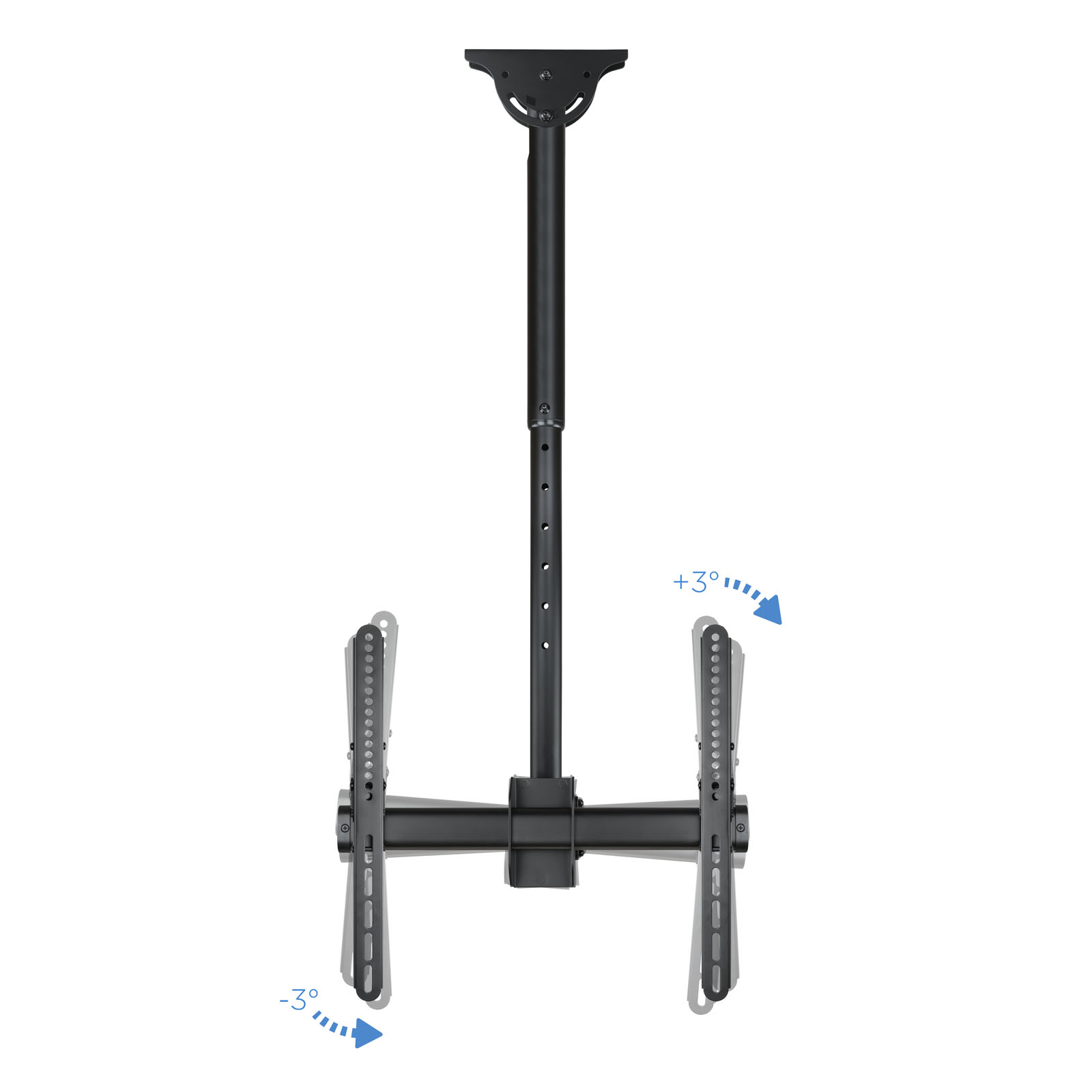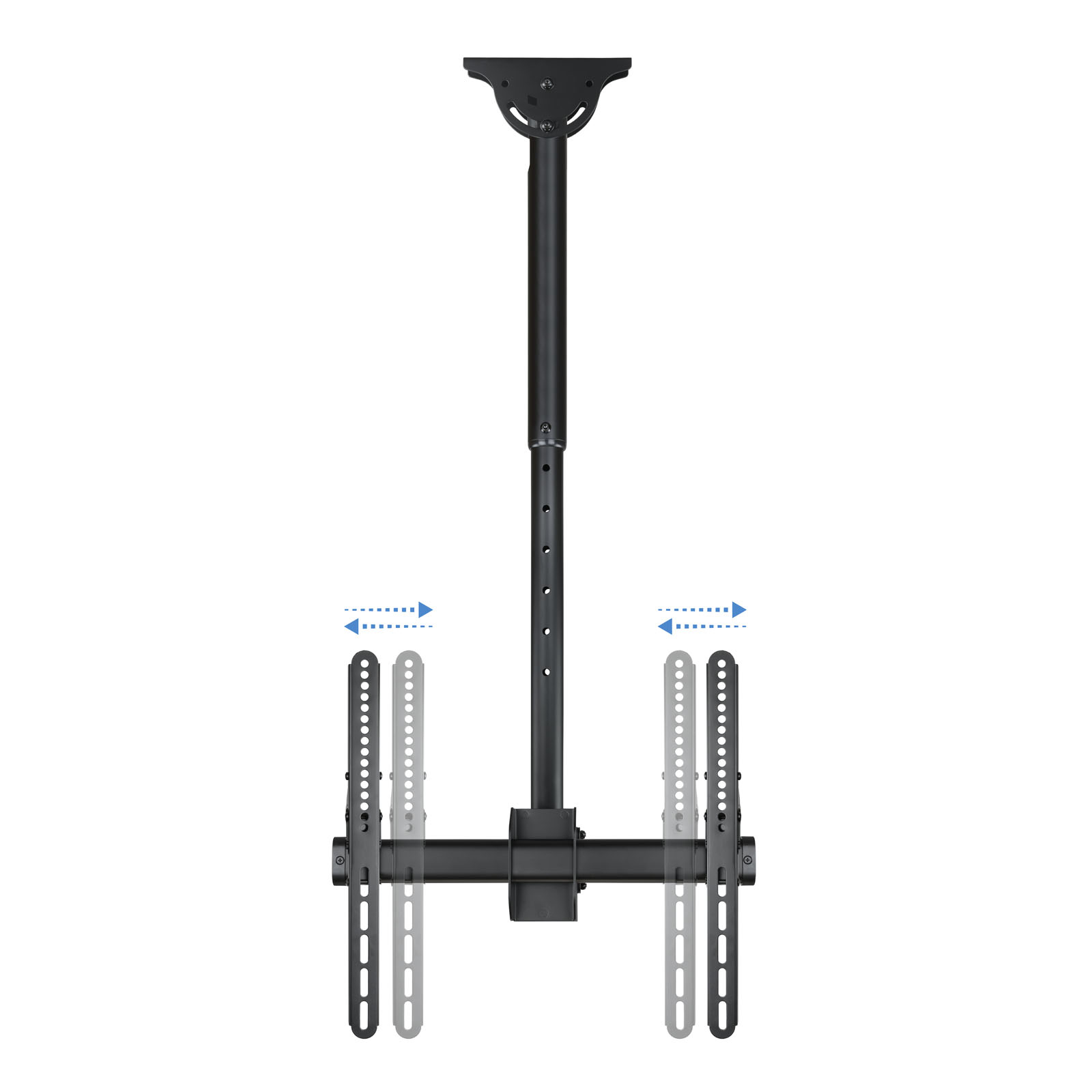 – Soporte de techo giratorio, inclinable y extensible para TV/Monitor de 32″ a 55″- VESA máxima: 400×400- Carga máxima: 50 kg- Distancia entre techo y pantalla: ajustable entre 1060 y 1560 mm- Inclinación: entre -25º y +0º- Angulo de giro: 360º- Angulo de nivelación: -3º y +3º- Pantallas soportadas: 10” a 32”Características y EstándaresIndicado para pantallas de 32″ a 55″Con una carga máxima de 50kg. usted podrá rotar su pantalla un ángulo de 360º, que le permitirá un ajuste óptimo de la visualizaciónAltura al techo ajustable entre 1060 mm y 1560 mm.Fácil y Rápido.Incluye manual de instrucciones y kit de montaje para que en unos minutos pueda disfrutar de su TV o monitor en el lugar elegido.Su Elección.Con 10 años de garantía y fabricado en metal de alta resistencia está disponible en negro metalizado. Siempre con la calidad de los productos Tooq y al mejor precio.