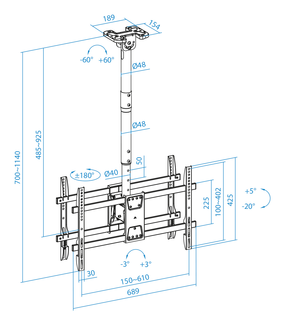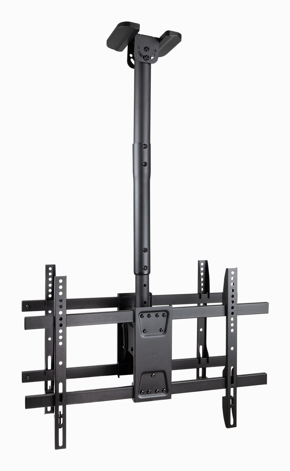 Soporte de Techo para 2 Pantallas de 43”-86”Tus pantallas por todo lo alto. Con nuestro nuevo soporte de techo podrás tenerlas instaladas en cuestión de minutos. Date el gusto de ganar espacio y orden aprovechando este nuevo espacio.