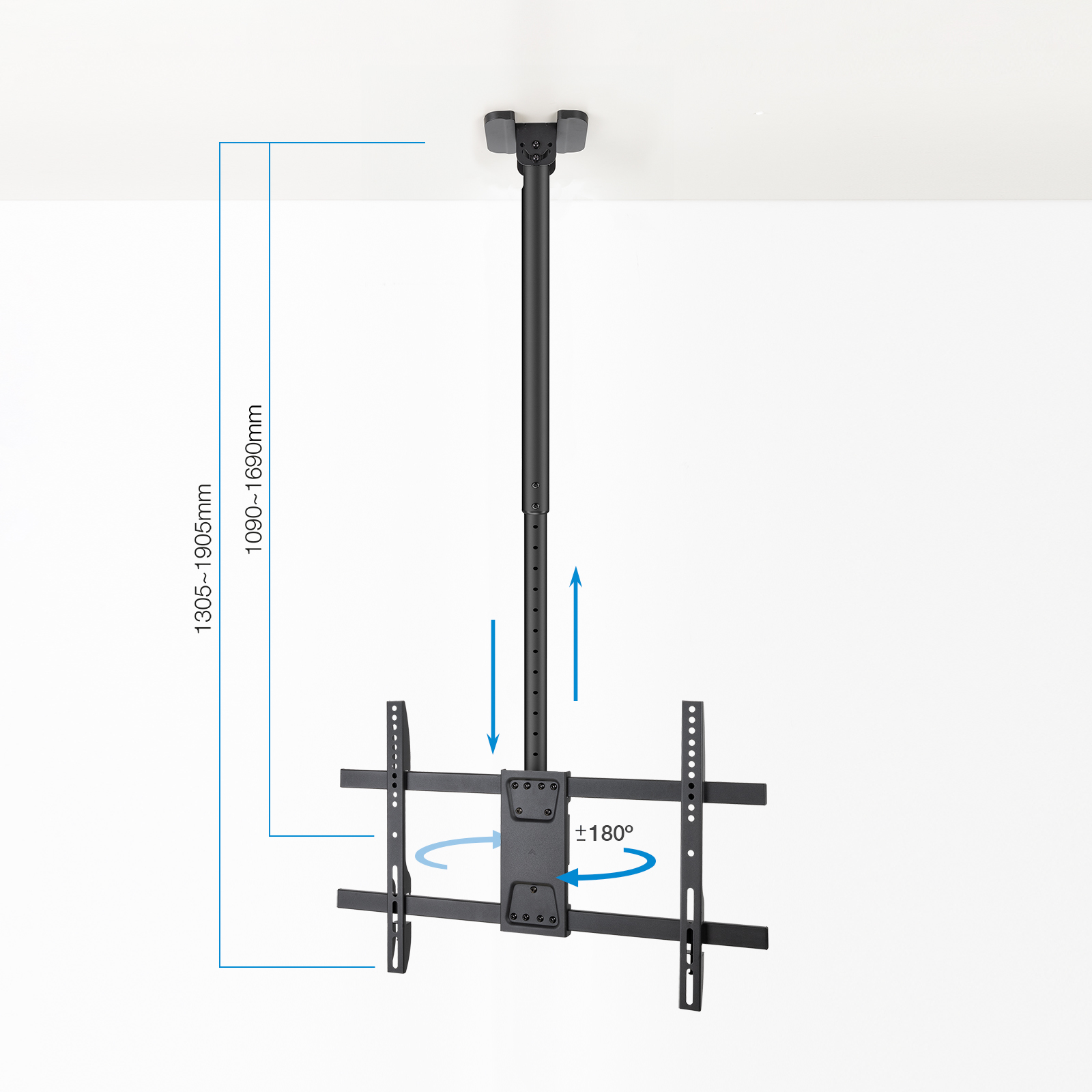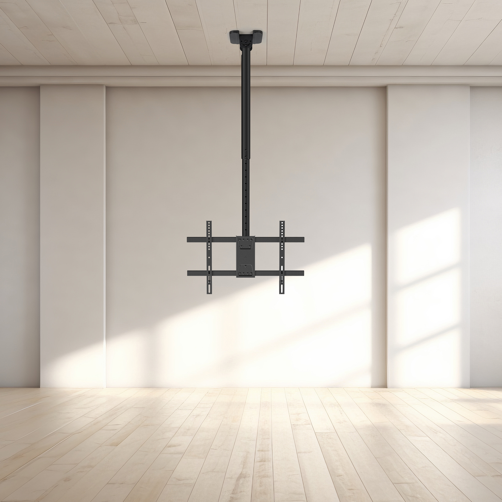 Soporte de Techo para Pantallas 43”-86”Imagina poder colocar tu gran pantalla en cualquier parte sin perder espacio. ¿Imposible? Hazte con nuestro soporte de techo y descubre que no lo es. Ideal para salones, salas de exposiciones, reuniones, etc.