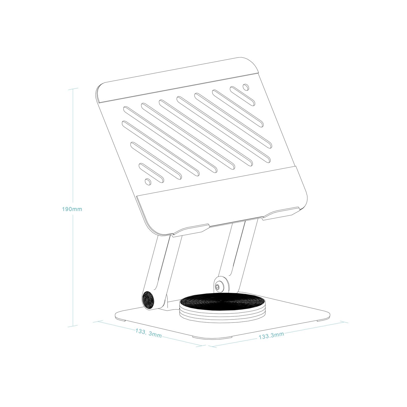 TooQ Soporte Elevador con rotación 360° y ajustable, para dispositivos de hasta 13”, Color Gris Oscuro. Tipo: Soporte para tableta, Marca compatible: Universal, Compatibilidad: Max 13″. Ancho: 166,3 mm, Profundidad: 137,8 mm, Altura: 34,4 mm