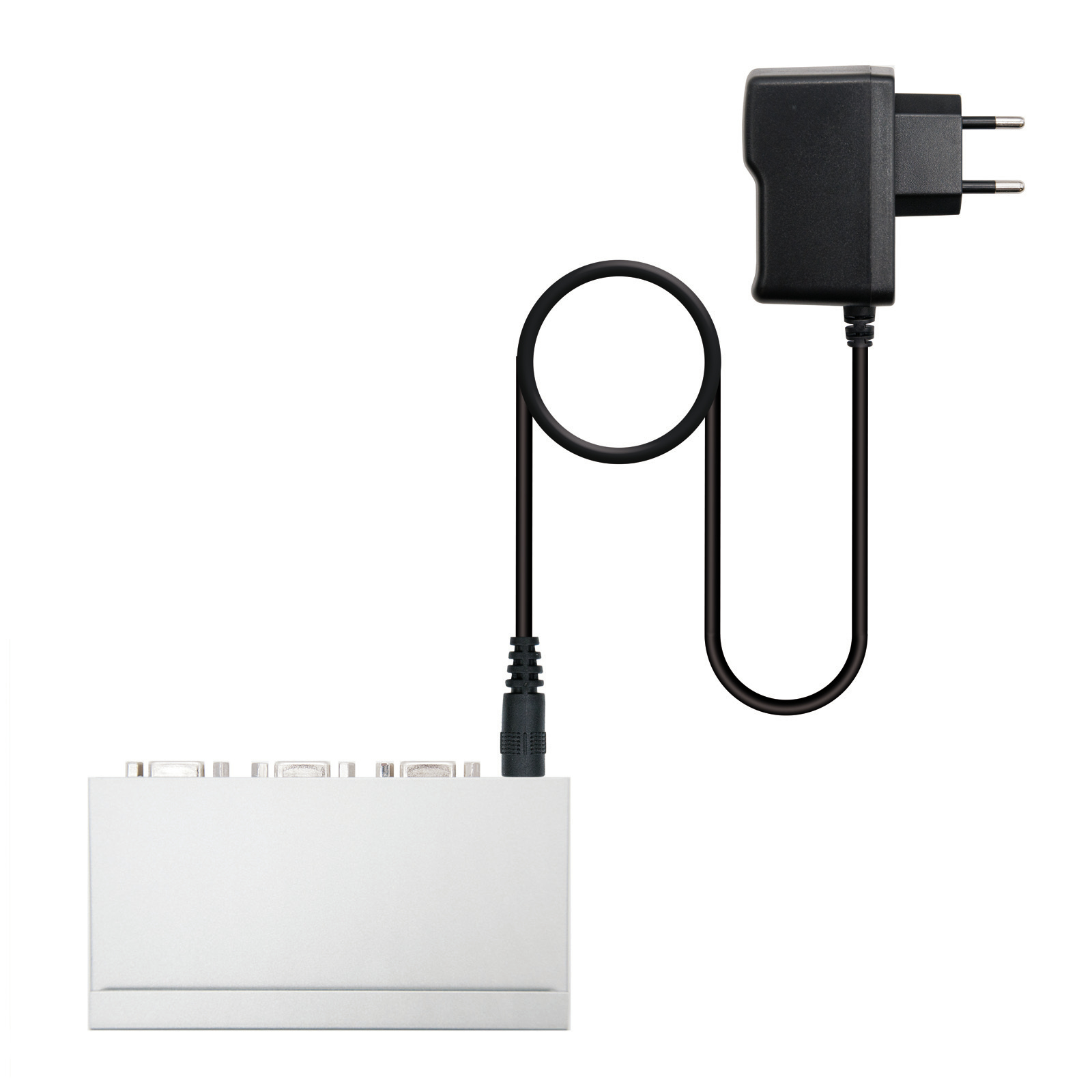Duplicador de VGA para dos monitoresEspecificación:- Ancho de banca de 250MHz- Aumenta la señal de vídeo para distancias de hasta 30m- Soporta DDC, DDC2, DDC2B (solo puerto 1)- Permite la conexión en cadena margarita- Puerto de entrada de señal: hembra- Puerto de salida de señal: hembra- Carcasa metálica- Factor de forma pequeño- Adaptador de corriente incluido- Cables SVGA no incluidos- Ideal para las emisiones públicas, monitorización remota, aulas de formación, etc.- Contenido del paquete:- 1 x Vga duplicador (splitter) para 2 monitores con alim.Información del embalaje:Caja retailPeso aprox.(kg): 0,9Medidas aprox.(mm) alto/ancho/largo: 230/100/60