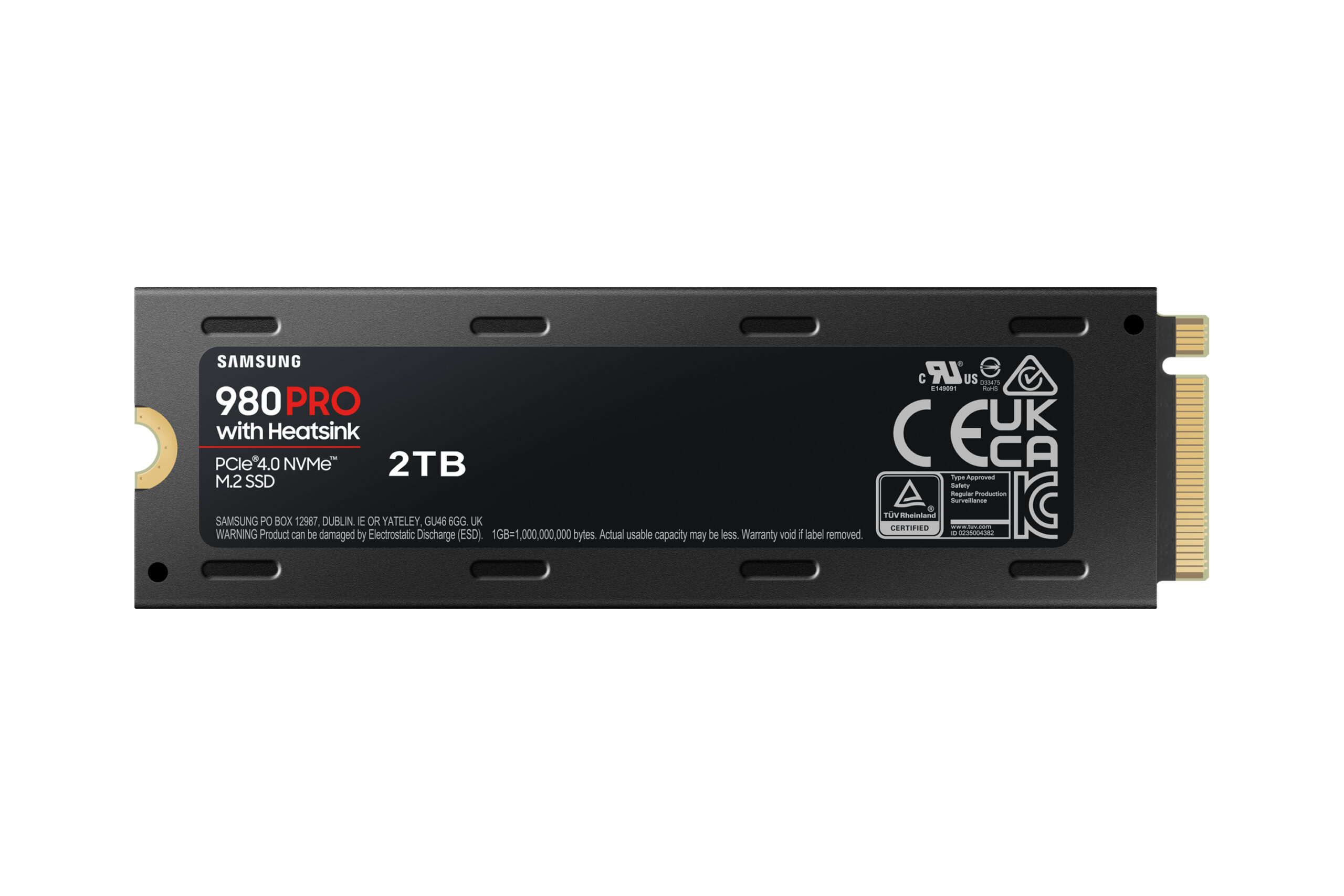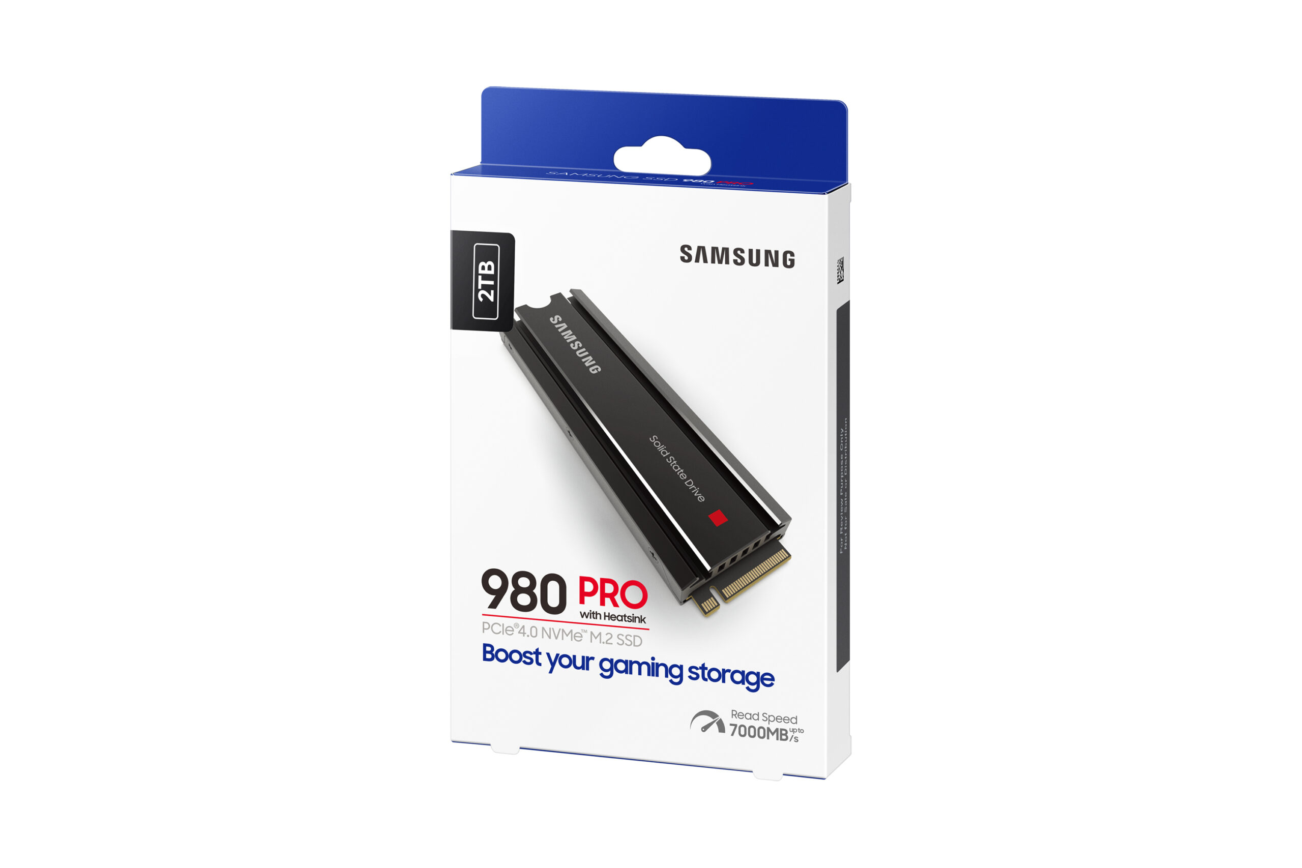 Rendimiento SSDD de primer nivelDa rienda suelta a la potencia del Samsung PCIe 4.0 NVMe™ SSD 980 PRO para un funcionamiento de siguiente nivel. Aprovechando la interfaz PCIe 4.0, el 980 PRO ofrece el doble de velocidad de transferencia de datos que PCIe 3.0 y, al mismo tiempo, es compatible con PCIe 3.0 para una mayor versatilidad. El disipador añadido eleva la velocidad, la eficiencia energética y el control térmico para optimizar la experiencia de juego.Velocidad máximaAlimentado por el controlador Elpis personalizado de Samsung para SSD PCIe 4.0, el 980 PRO está optimizado para la velocidad. Ofrece velocidades de lectura de hasta 7.000 MB/s, lo que le hace 2 veces más rápido que los SSD PCIe 3.0 y 12,7 veces más rápido que los SSD SATA. El 980 PRO alcanza velocidades máximas en PCIe 4.0 y puede variar en otros entornos.Control térmico inteligenteEl controlador térmico de Samsung gestiona de forma fiable los niveles de calor del chip NAND. La etiqueta del disipador 980 PRO permite el acceso al control térmico. El disipador 980 PRO utiliza tecnología probada SSD de centro de datos para disipar el calor y garantizar, así, un juego continuo de alto rendimiento en la mayoría de consolas y sistemas de PC.Una combinación ganadoraTanto los jugadores como los amantes de la tecnología y los diseñadores se beneficia del control térmico, el ancho de banda de alto rendimiento y de un rendimiento continuado para las aplicaciones más exigentes. Los juegos se cargan rápidamente para jugar más y esperar menos. La gestión inteligente del calor reduce las molestias ocasionadas por el ruido y el trabajo del ventilador de refrigeración, para un juego ininterrumpido y totalmente inmersiivo.SSD M.2 eficienteEl 980 PRO con disipador minimiza los límites de espacio con un cuerp degado de 8,6 mm, compatible con PlayStation®5, así como con ordenadores de sobremesa y portátiles que cumplen las especificaciones PCI-SIG® D8. El factor de forma M.2 de la 980. PRO, compacto y fácil de conectar, maximiza la flexibilidad del diseño de la placa, creado sistemas de alto rendimiento más eficientes.Software Samsung MagicianDesbloquea toda la potencia del 980 PRO con las herramientas de optimización intuitivas pero avanzadas de Samsung Magician. Supervisa el estado de la unidad, optimiza el rendimiento, protege datos valiosos y recibe actualizaciones importantes, para asegurarte que siempre obtienes el mejor rendimiento de tu SSDLa memoria flash número 1 del mundoExperimenta un rendimiento y una confianza superiores que solo podrás obtener de la marca número uno del mundo en memorias flash desde 2003. Todos los firmware y componentes, incluidos DRAM y NAND, de renombre mundial de Samsung, se producen internamente, lo que permite un control de calidad de principio a fin. Producimos una calidad en la que puedes confiar.