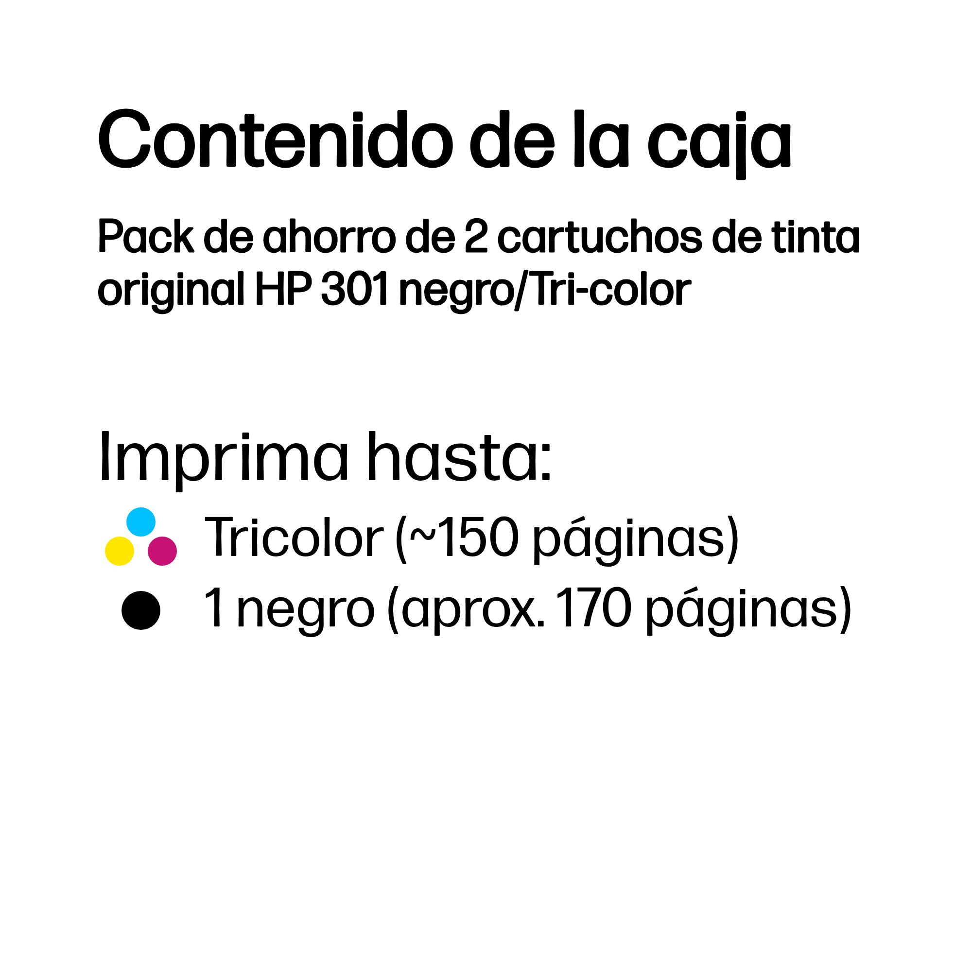 HP Pack de ahorro de 2 cartuchos de tinta original 301 negro/Tri-color