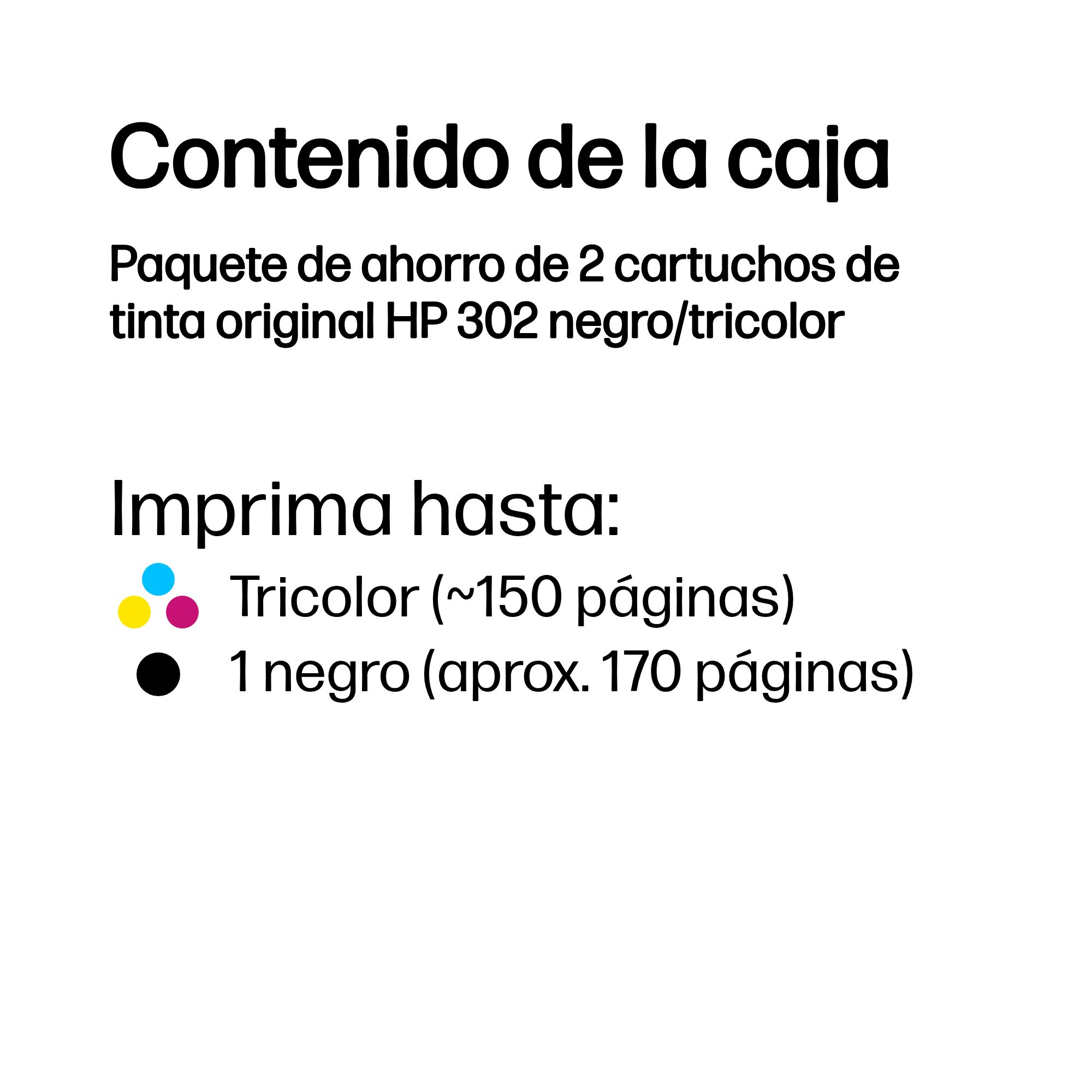HP Paquete de ahorro de 2 cartuchos de tinta original 302 negro/tricolor