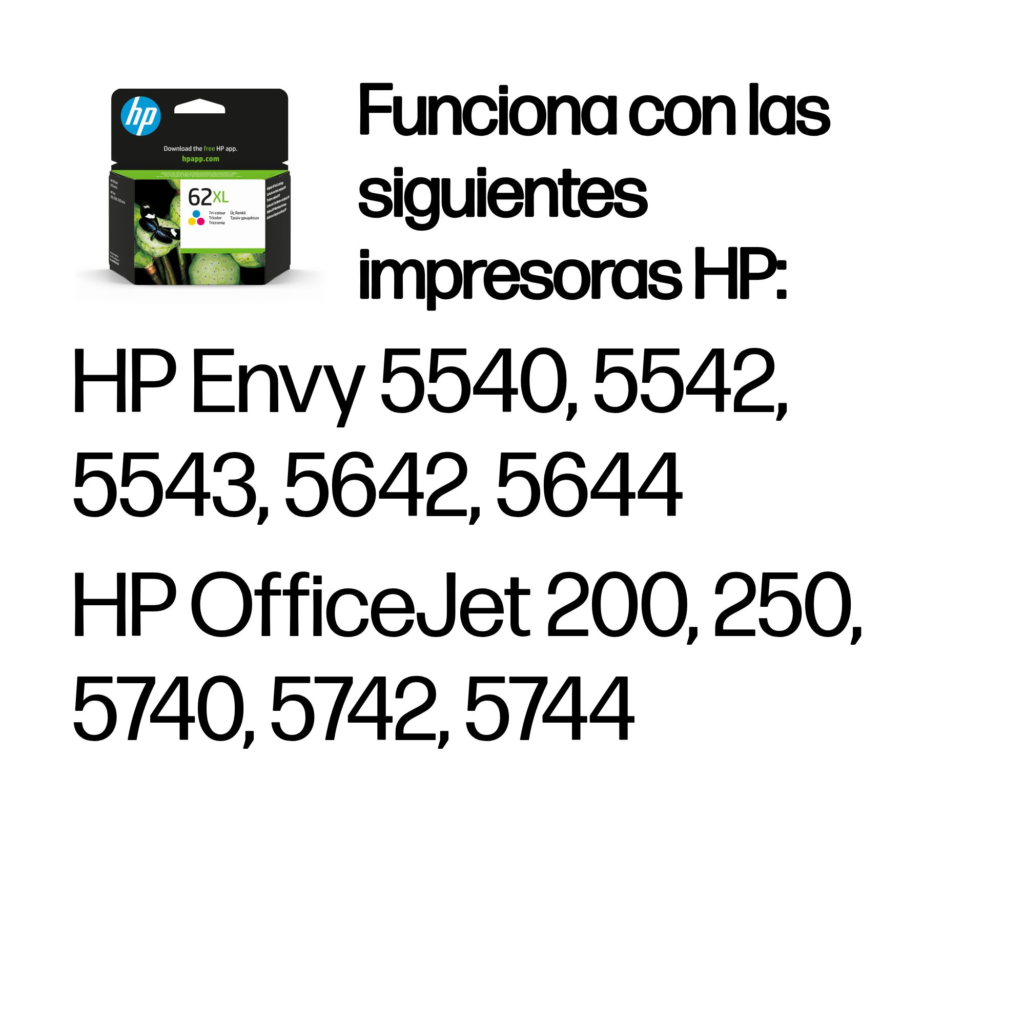 HP Cartucho de tinta original 62XL de alta capacidad tricolor
