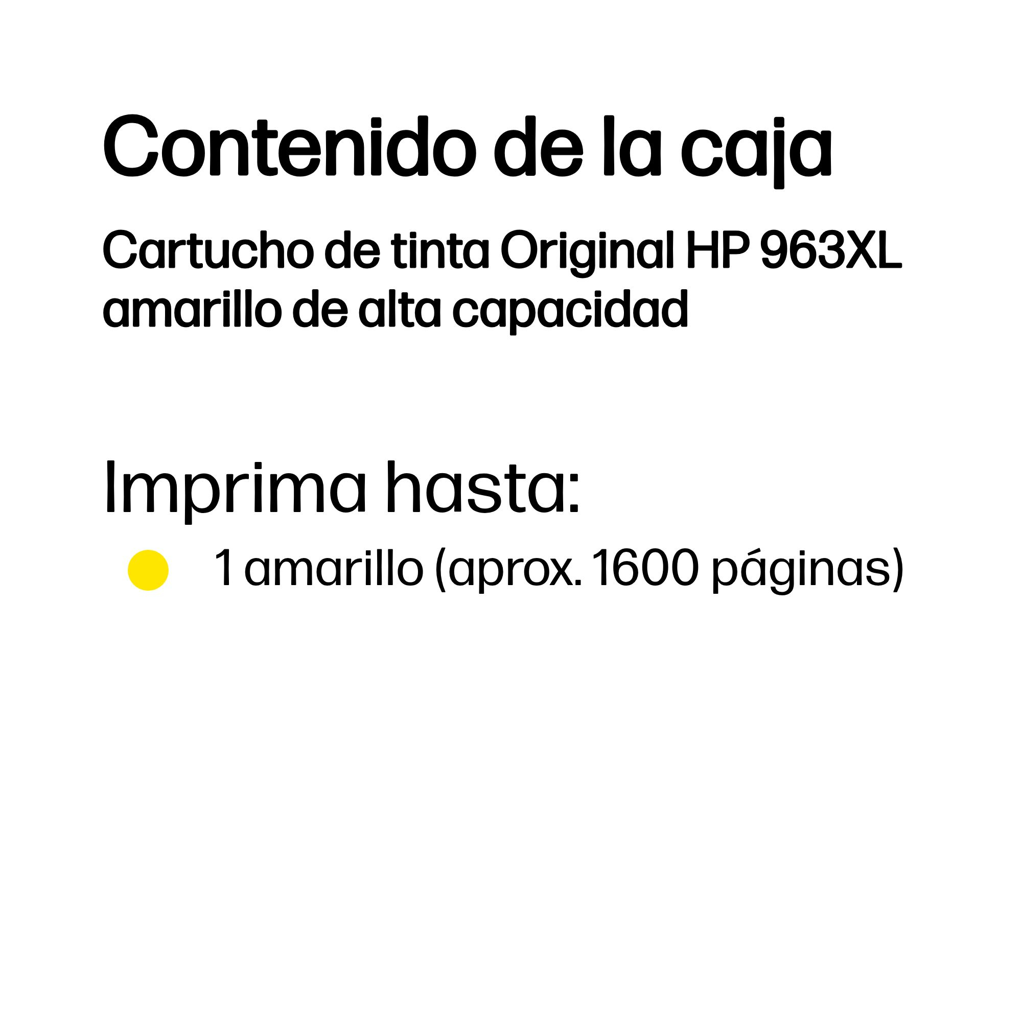 Tinta HP 963XL Amarillo 22.92ml 1600 páginasDisponibilidad: Hay existencias